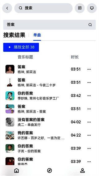3、快速搜索功能:强大的搜索引擎,您可以通过输入关键字快速找到目标歌曲或歌手。