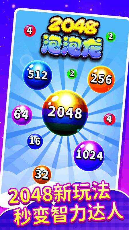 《2048泡泡龙》是一款结合了经典数字合并与泡泡消除机制的创意休闲游戏,将两种耳熟能详的玩法巧妙融合。玩家将在一个色彩缤纷、泡泡满屏的游戏界面中,通过发射带有数字的泡泡进行碰撞合并,目标是不断合成更高数值的泡泡,直至达成2048这一终极数字。