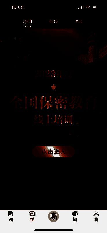 打开保密观app后,点击右下角“我”,或者底部的“学-培训”,都可以进行登录,如图所示;