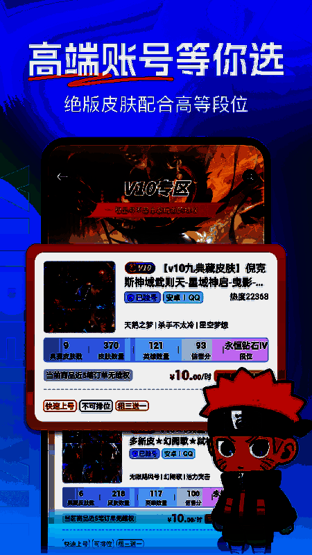 虚贝租号 一元租号也称为虚贝网应用程序,是一个专业的游戏账号租赁平台,主要推广CF、LOL、王者荣耀和绝地求生等热门游戏账号,拥有大量高级账号和丰富功能。由于目前游戏行业的蓬勃发展,玩家对高质量账户的需求越来越大,因此虚贝被打造成一个以高质量、专业性和安全性著称的玩家账户交易中心。