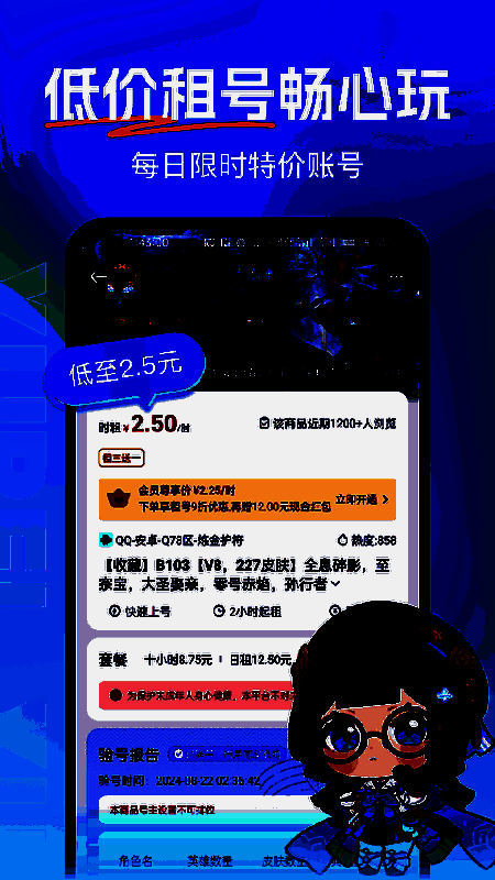 虚贝租号 一元租号是一款非常易于使用的安卓号码租赁服务软件。这个软件可以为用户提供很多游戏租赁服务。无论是什么游戏,你都可以在这里找到他的账户租赁服务,这样用户就可以快速找到他们需要的账户并快速租赁游戏。该软件主要是CF、LOL、DNF、绝地求生等流行游戏。它还提供全新的steam和wegame新的旅游账户出租。此外,这里直接介绍了账户有哪些设备,用户可以根据介绍直接选择账户。该软件的主要目的是建立一个专业、高质量、信誉良好的号码租赁平台,为玩家提供非常好的号码租赁服务,让玩家可以以最低的价格租用他们想要的账户。