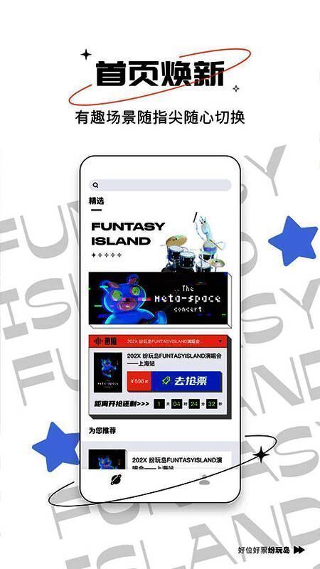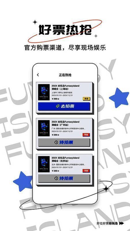 纷玩岛 演唱会门票官网版是一款专注于粉丝服务的演唱会购票软件。平台内容丰富,有采访资讯、迷你综艺、深度话题等。,可以为用户提供绝佳的娱乐和潮流生活体验。领先一步,获取最新流行娱乐资讯;与人距离一米,近距离体验偶像魅力;在先人的时刻,我们分享直播的喜悦。作为一个周到的演出票务软件,它提供了广泛的票务服务,包括音乐会,小型演出,电子音乐,名人出席活动。用户可以选择不同时间的演出来购买门票,并实时获得海量的潮流信息和动态内容。用户想体验的场景都在粉湾岛上。有需要的用户可以快速下载,现场找到自己真正的快乐。