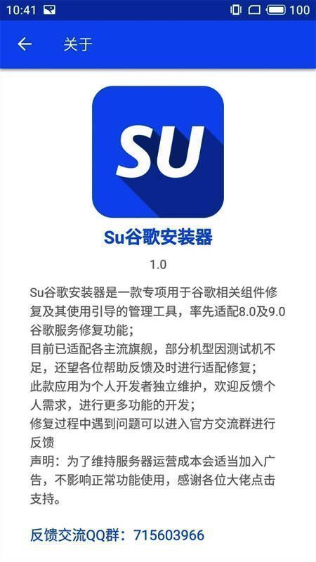 Su谷歌安装器 三件套是一款享受谷歌全家桶的必备工具。需要谷歌服务的游戏将告别崩溃!两种模式,帮助你修复谷歌服务,精准适配谷歌服务版本;目前兼容OPPO VIVO、小米、华为、一加、魅族等主流机型。支持Android 8.0和9.0谷歌服务安装,成为值得信赖的谷歌安装程序;支持一键禁用/启用Google服务功能,冻结Google服务后端功耗;欢迎提供富有想象力的想法,并根据您的需求定制和集成您自己的管理工具!