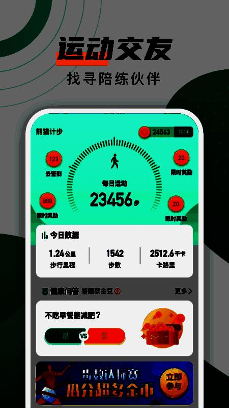 熊猫计步手机版是一款非常实用的免费计步软件,拥有丰富的计步模式,可以实时记录用户的走路步数,运动轨迹,时长等信息,随时让用户轻松了解查看,还可以自由设置计步数据,轻松让用户享受便利的服务和体验,同时该软件也具有简洁的界面设计,用户可以轻松进入社区,随时随地自由交流讨论,能完全满足用户的使用需求,还可以轻松关注自己的身体数据,轻松帮助用户在线制定各种运动计划和方式,有兴趣的用户欢迎下载。