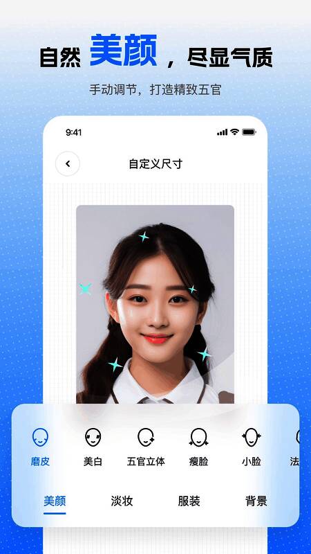 这款软件可以根据自己的使用场景自定义证件照片,自由帮助用户制作各种美颜证件照,还支持更多免费的工具菜单打设置,方便用户制作证件照片,随时享受便携的证件照拍摄服务。