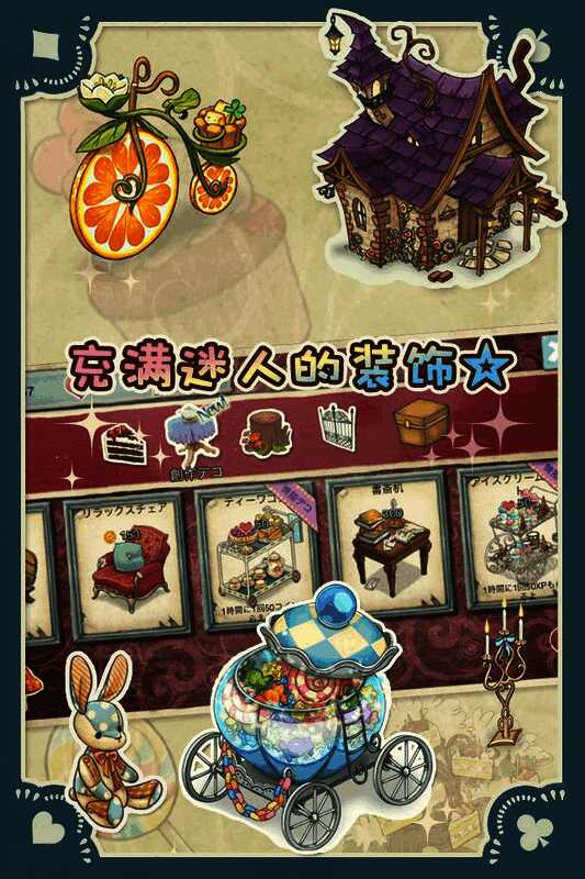 4、角色美术形象生动可爱,各有特色。例如机智的柴郡猫、神秘的红心皇后等增加了游戏的乐趣。