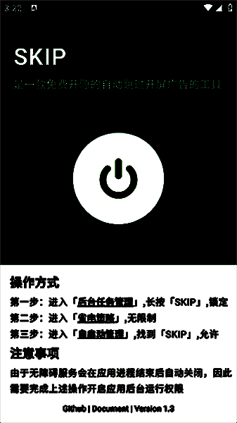 免费好用的广告跳转软件!通过智能识别屏幕广告的特征,自动跳过这些广告,让你直接进入你想要的应用。无需等待或手动操作,您可以立即享受流畅的应用体验。不再被烦人的广告打扰,你可以更专注于你真正想做的事情。可以帮助用户快速跳过启动页面广告,净化屏幕体验,防止广告干扰。通过使用SKIP,用户可以更有效地使用他们的设备,并专注于他们真正关心的内容