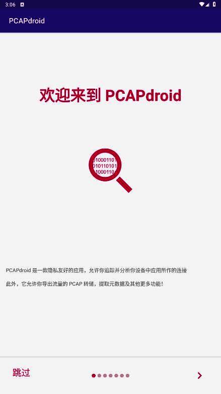打开应用程序并根据提示授予其捕获网络数据包的权限。