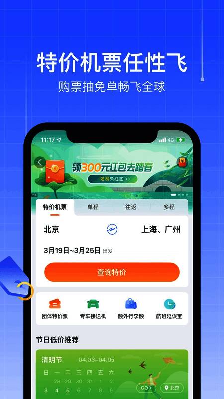 1.用户只需输入出发地和目的地,点击“搜索折扣机票”,即可快速找到价格优惠的航班;