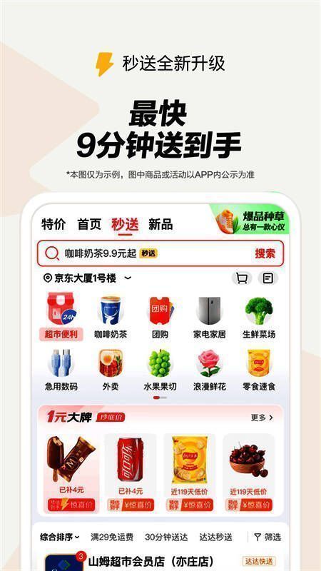 1、与京东无缝集成。COM的生态:你不需要一个独立的APP,但你可以通过京东主页上的“二次交付”栏直接进入外卖服务。COM APP,整合即时零售和本地生活服务。