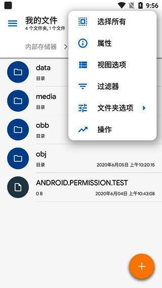 3、属性分析功能:此文件管理器没有专用的存储分析器,但可以导航到内部存储卡的文件夹属性,以确定文件占用空间。