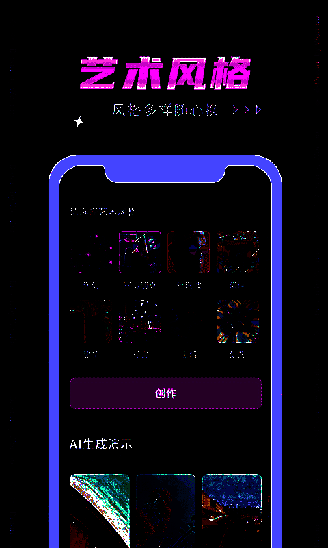 dream by wombo 绘画软件是一款智能绘画工具手机应用软件,有很多新颖的使用方式。这种游戏方式掀起了一股新的“人工智能创造”浪潮,其中智能绘画功能可以让你脑海中的奇思妙想一一成真,成为触手可及的有形物体。同时,软件生成的图片也具有抽象风格,足以让用户实现“盲文绘画”的梦想。使用方法也特别简单方便。只要用户在输入框中输入您想要的主题样式,AI就会自动为您匹配主题,您也可以直接在应用程序中选择艺术风格,您可以在AI生成演示的图片中免费尝试AI生成功能。如果朋友有绘画梦想,请下载此软件来实现。