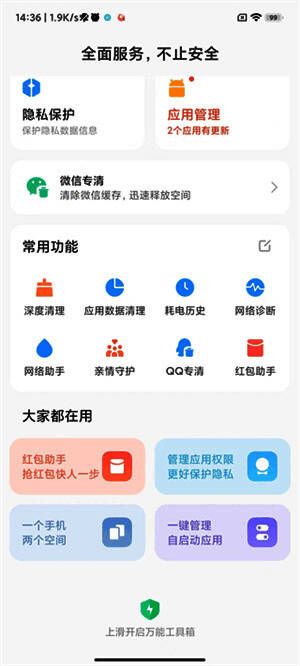 1、零广告纯体验:没有开屏广告和促销弹出窗口,核心功能免费开放,支付点仅限于“个性化安全皮肤”等不必要的装饰。