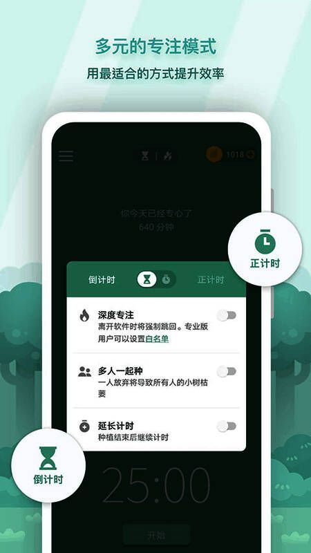 1、番茄工作法整合:遵循番茄工作法,设定聚焦期。每完成一个专注期,就像种下一棵小树。随着时间的推移,小树逐渐长大,象征着你的付出和时间的积累。
