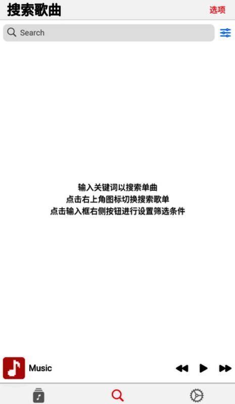 在搜索栏输入关键词,浏览可用的音乐资源。