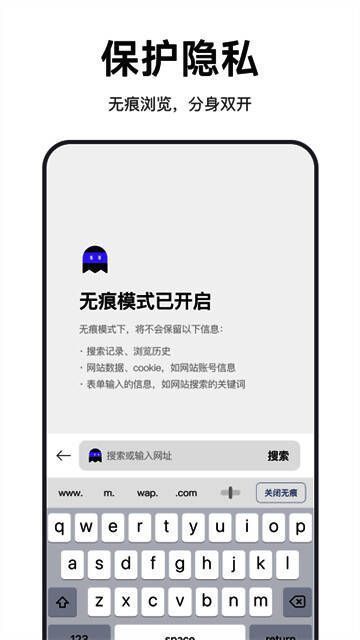 支持无痕浏览,隐私保护,安全上网。