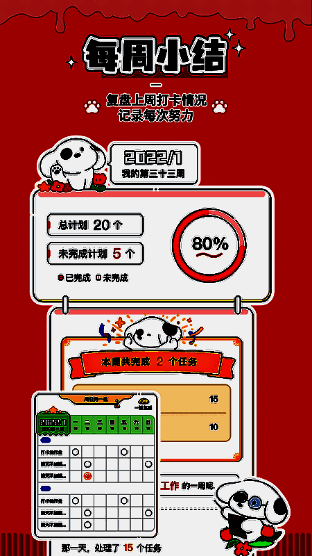 用户可以使用个性化的头像来装饰自己的规划界面,使界面更加生动有趣。坚持打卡还能得到狗粮,用户可以通过打卡增加积极性,培养自我管理的能力和习惯养成。