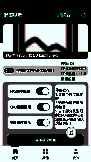 2.在此,您可以随时查看屏幕的帧率显示和温度显示。