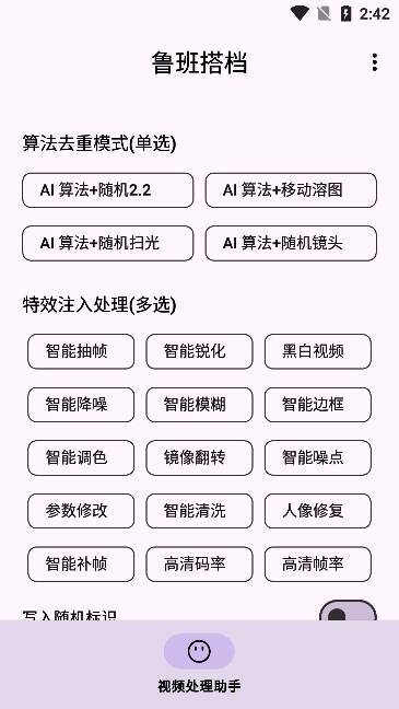 鲁班搭档 免费工具是一款非常易于使用的“处理软件”,它集AI视频去重、智能编辑、内容优化等功能于一体。一键处理操作简单,使视频创建更容易。整个过程使用起来非常简单,绝对可以满足大家二次创作的需要。只需点击一下,它就可以快速为您传输短视频;应用程序不仅解决了视频传输中的版权和复制问题,还通过智能编辑功能提高了创作效率,使内容创作者能够专注于创作,而不是繁琐的技术处理!