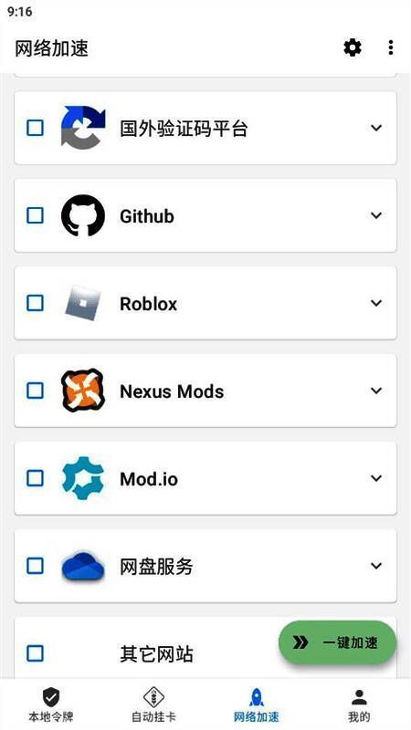 3、设置好登录令牌后,就可以前往网络加速页面中选择一个或多个需要加速访问的网站