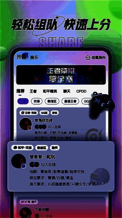 4、游戏社交整合:内置“游戏玩伴”功能,可以快速匹配游戏大师组成团队,边玩边聊天,享受社交娱乐。