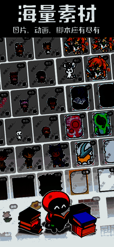 2、随时随地随意创建主题背景、人物、系统障碍、道具,完成的画可以用在自己作品的任何地方。