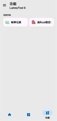 5、点击【功能】,看到【帧率记录】和【免Root锁定画质】