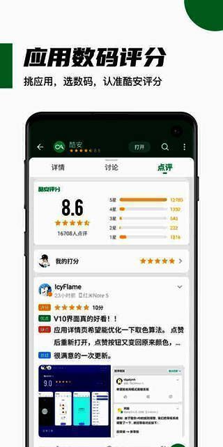 酷安应用市场下载安装是一个综合的应用商店软件,结合了资源共享和社交互动。以其简单深入的界面设计和全面的功能覆盖赢得了许多数字爱好者的喜爱。与市场上其他充斥着第三方应用推广的复杂应用商店不同,酷安应用市场专注于创建一个动态、深入的交流社区平台,减少了不必要的应用推荐干扰。在这个平台上,每个用户都可以找到自己的位置,自由交流经验,分享技术生活中的乐趣。对这款软件感兴趣的朋友快来下载体验吧!