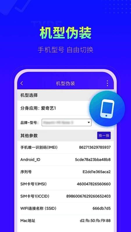 4.模型伪装:您可以选择模型伪装功能来模拟不同的手机模型,享受更多有趣的应用程序或游戏。