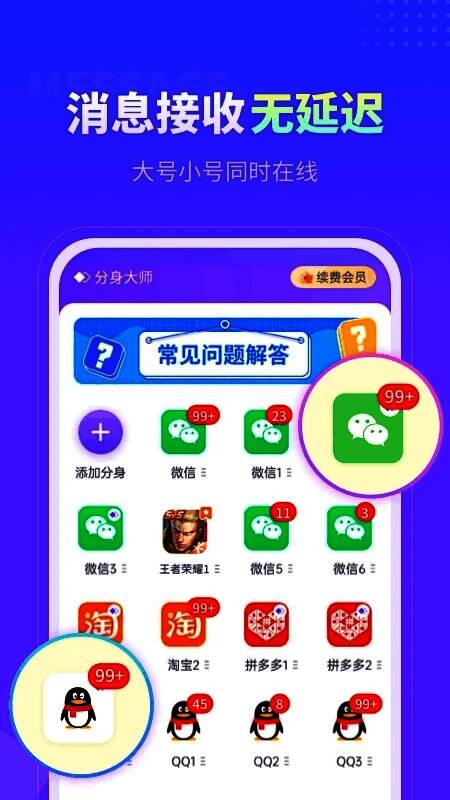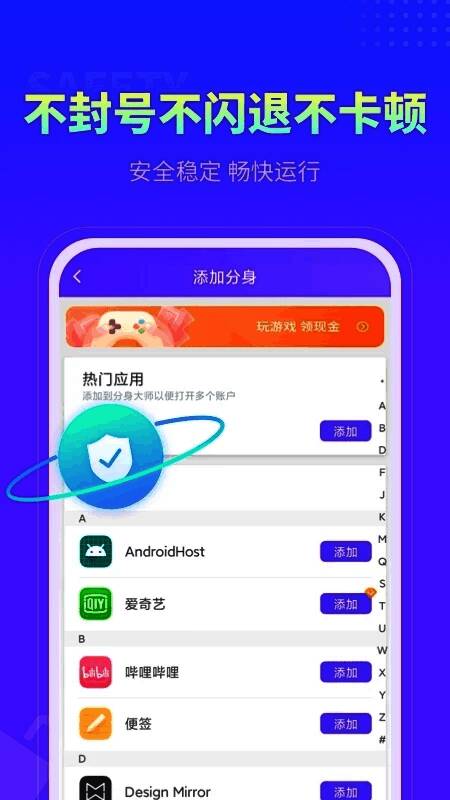 分身大师2025最新版是一个功能强大且实用的工具!分身大师2025最新版支持几乎所有同时在线使用多个帐户的应用程序,使用户可以轻松管理多个帐户,提高工作效率和娱乐体验。同时,分身大师2025最新版还提供了自定义图标、模型伪装、一键加速等多种实用功能,以满足用户的多样化需求。此外,app的稳定性和安全性也得到了用户的广泛认可。总的来说,分身大师2025最新版是打开多个应用程序的有价值的工具!