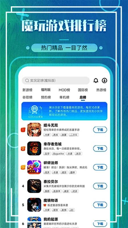 魔玩助手官网入口版是一款简单上手的游戏辅助软件,可以自由为用户提供丰富且全面的游戏资讯,新闻,攻略,视频,玩法等信息,随时让用户自由选择查看,还可以免费领取各种游戏福利和礼包,轻松体验精彩的游戏之旅,给用户带来全面的游戏服务,同时软件也拥有多样化的游戏社区,可以轻松交流讨论,轻松在里面找到各种开黑队友和大神玩家,能完全满足用户的使用需求,还可以查看热门游戏榜单,轻松选择感兴趣的游戏下载体验。