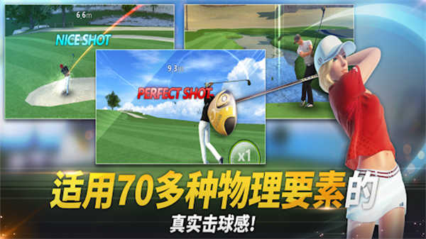 1.真实物理效果:游戏考虑了地形高度、发球角度、风向、温度、湿度等70多个因素。,完美呈现高尔夫球的物理变化,让球员体验真正的挑战。