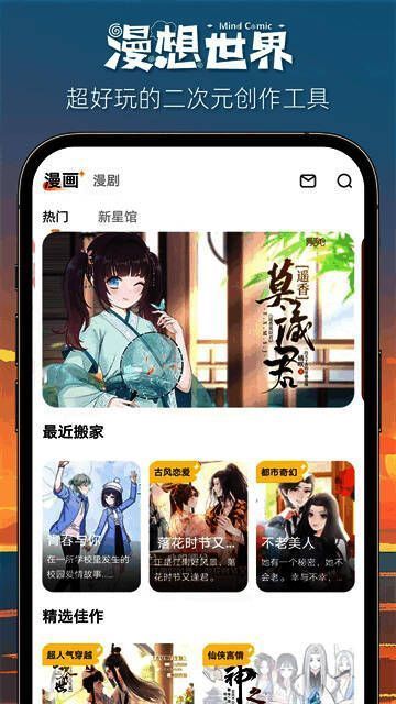 1、创意创作平台:提供丰富的工具素材库,支持用户自由创作漫画、插画等动漫作品。