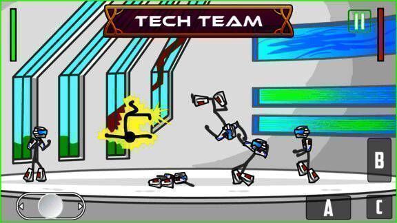 玩家可自由选择不同火柴人角色进行战斗,每位角色都拥有独特的动作设定和专属攻击方式。通过滑动与点击屏幕,玩家可以完成跳跃、翻滚、攻击等操作,灵活利用场景中的障碍物与道具来击败对手。游戏支持1v1单挑、团队战、混战等多种模式,还可与好友组队进行欢乐擂台赛。