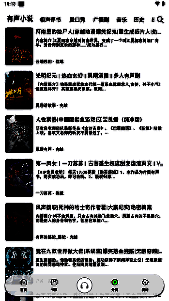 轻云听书 去广告免费听书app丰富的有声小说为用户提供了易于搜索、清晰流畅的音频收听体验。该平台提供的资源将不断更新,使您能够及时听到最新作品,并了解最新趋势。在这里,你可以通过声音学习不同的故事。海量音频内容可供免费收听、专业广播和热情口译,以及大量高质量有声读物供您点播。