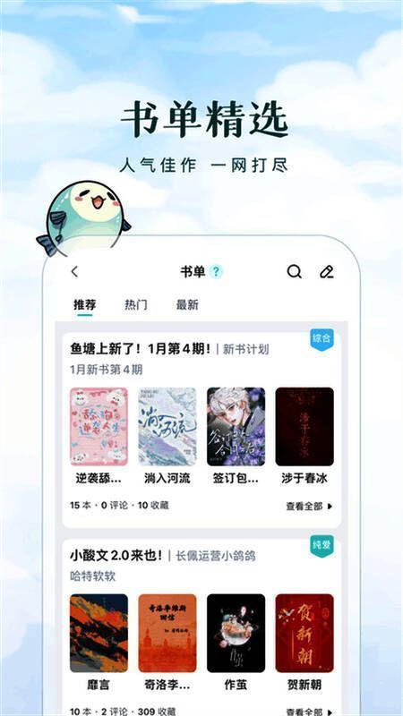 无论是经典完结作品还是当下热门连载,《长佩阅读 纯净无广版》都提供了丰富的推荐榜单,包括编辑精选、热门新书、短篇佳作等,确保每位用户都能找到心头所好。同时,社区互动功能也十分完善,书评区热闹非凡,让你在追更的同时不再孤单。