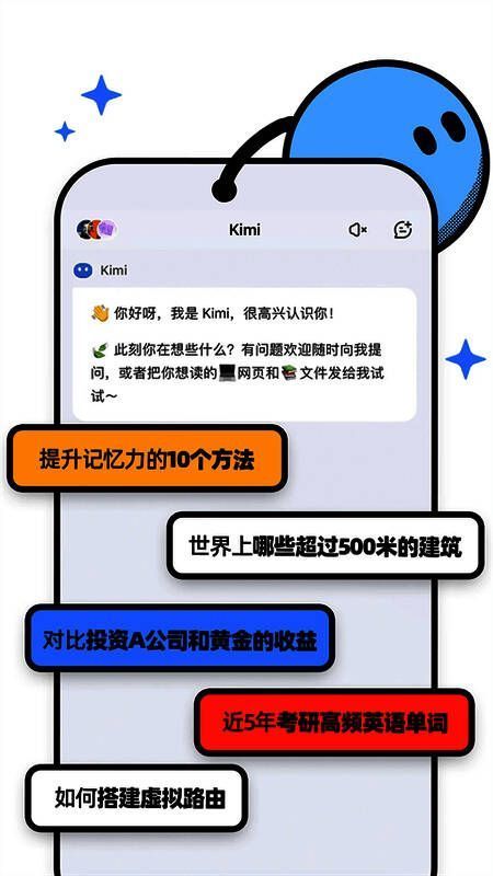 kimi智能助手 手机app版是一款功能强大的AI智能助手应用程序,具有超长无损内存,能够进行智能搜索、高效阅读、文件专业解释、数据组织、辅助创建和编程助手等功能。各行各业的人们,无论是学术研究、互联网行业、编程还是法律,都可以依靠kimi智能助手 手机app版提供的智能支持来提高工作效率,解决问题,获得灵感,实现更高水平的工作和创造。