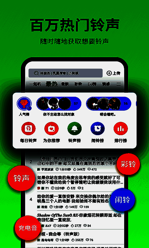 3、无论是个性比较强的用户,还是喜欢探索新事物的用户,都可以在铃声中找到自己喜欢的铃声。