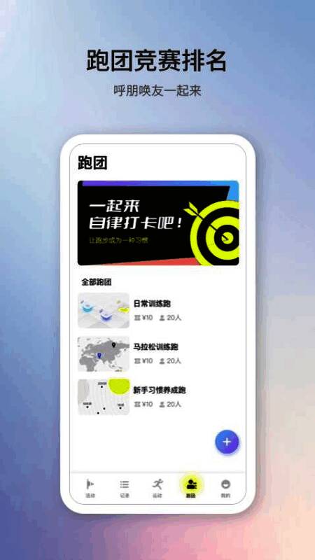 1、社区互动:提供多种跑步组选项,用户可根据自己的兴趣加入,与志同道合的朋友在线跑步;
