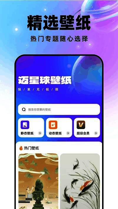 迈星球壁纸手机版内置了数量庞大的高清壁纸资源,涵盖风景、人物、动漫、游戏、科技等多个类别,用户可以自由浏览、下载并设置为自己手机的桌面。无论你是喜欢清新自然的风景照,还是偏爱潮流酷炫的动态图,这里都能找到心仪之选。