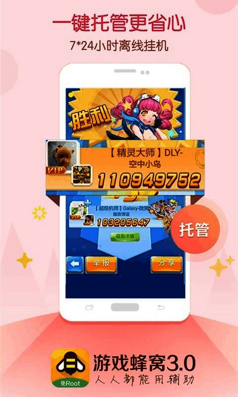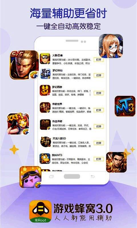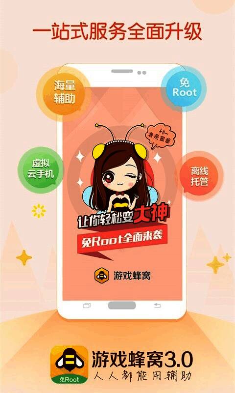 游戏蜂窝 挂机辅助软件是一款非常易于使用的手机根免费软件,用户可以使用该软件进行各种帮助,帮助他们完成各种游戏任务或以其他方式,这可以大大节省用户的时间并体验各种游戏。哦,该软件是一站式服务,允许用户随意使用,支持所有全屏和其他型号,是一个真正的无根移动游戏工具!游戏蜂窝为玩家创造了一条效率升级之路,使用新的黑色技术玩手机游戏更容易!