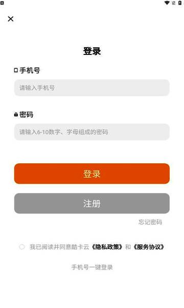 2、同意酷卡云游戏app的使用协议