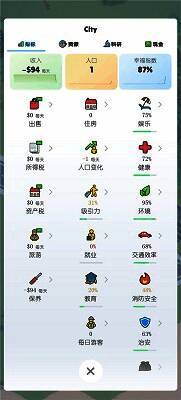 3、战略资源管理:平衡预算、人口和环境,应对突发灾害(如火灾和污染),考验市长的智慧。