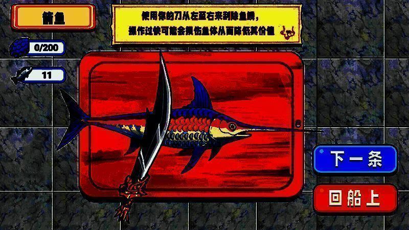 钓到鱼只是第一步,接下来的处理过程同样充满乐趣和挑战。玩家需将鱼带到船中央的刮鳞区域,使用指定工具为鱼去鳞。操作过程中需要精准控制力度与角度,既要清除所有鱼鳞,又要避免划伤鱼身,以确保最终品质。