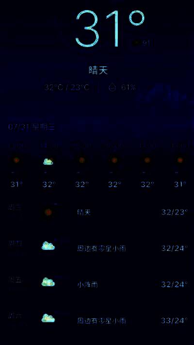 3、多维度天气信息:除基本天气情况外,还提供日出日落时间、月相等附加信息,丰富用户天气体验。