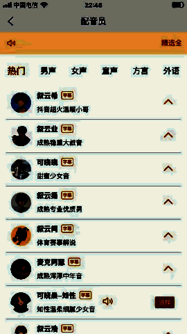 这款软件的界面界面简洁,每个用户都能快速上手,实现高效的配音操作,还拥有各种配音方式,随时让用户在轻松愉快的氛围中自由配音,轻松选择各种配音模式,享受智能全面的在线配音服务。