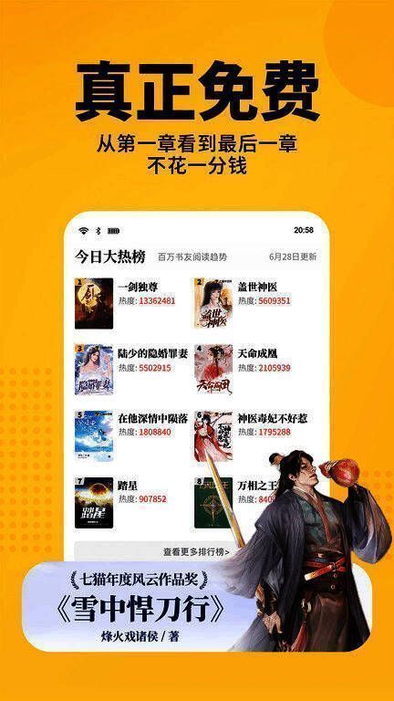 七猫免费阅读小说免费安装是一款功能丰富、使用简单、内容丰富的小说阅读软件,可以满足小说爱好者的各种需求。用户可以在这款软件中免费阅读大量小说,涵盖多种体裁和类型,包括言情、玄幻、历史、都市等。七猫免费小说为用户提供了优质的阅读平台,支持离线下载,提供多种阅读模式和主题皮肤,用户体验更加舒适。感兴趣的朋友不要错过下载。