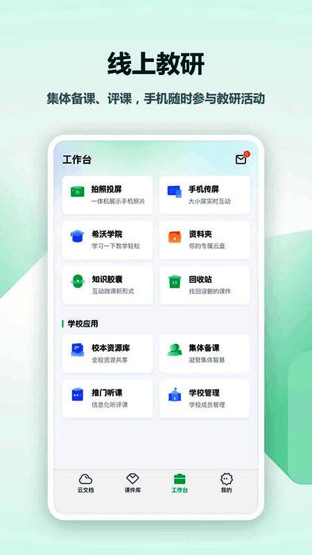 2、专门针对教学场景设计,直接使用手机管理课件,移动教学,移动教学;