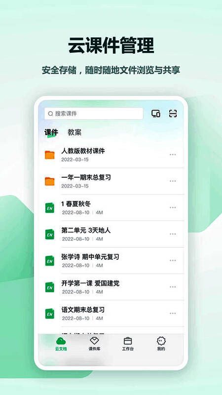 -用户可获得免费云空间用于上传/存储/获取课件。