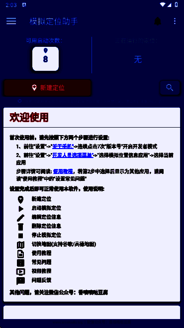模拟定位助手免费版是一个可以改变ip定位的软件。该软件具有丰富的手机虚拟定位工具功能,帮助您定制地图的任何位置。微信和qq都可以,还可以模拟自己的轨迹,修改步数。支持谷歌/高德两种地图,覆盖多个国家或地区。欢迎下载体验!